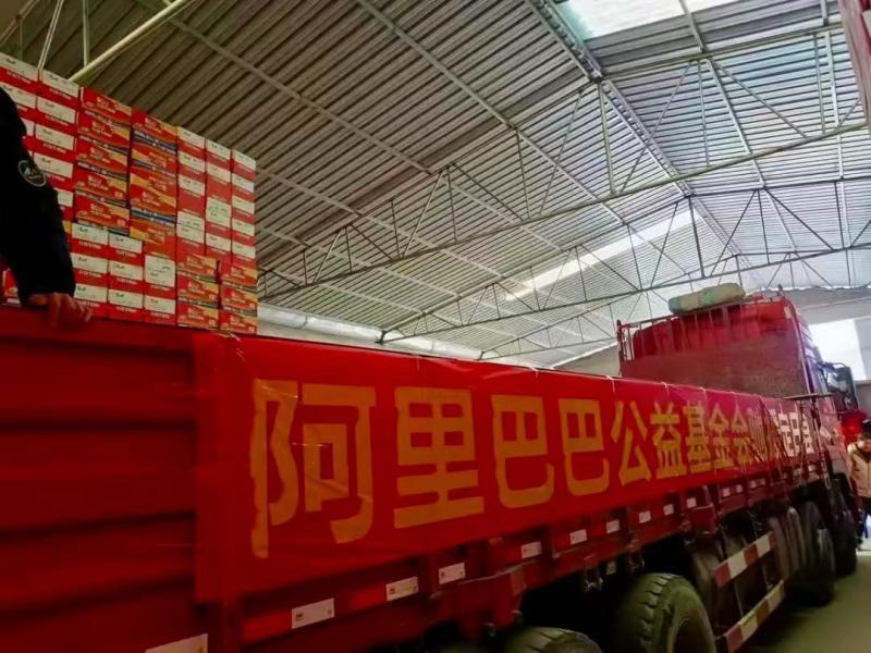 阿里巴巴捐给西藏震区首批10万份食品已发车
